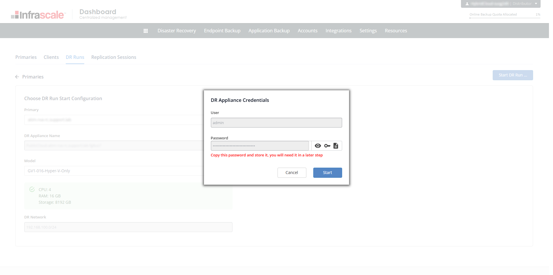 In order to boot backup jobs as virtual machines in the Hybrid Cloud, it is necessary to start a DR (Disaster Recovery) Run from the Infrascale Dashboard. This action will initiate a boot and the initial setup of a DR Appliance in the Cloud. This article is a step-by-step guide on how to initiate a DR Run from the Infrascale Dashboard.